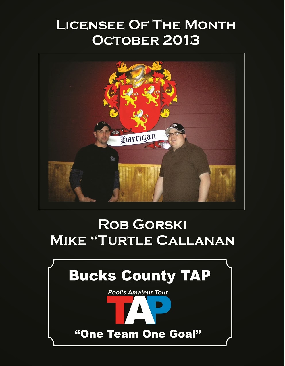 My name is Rob Gorski, born and raised here in Bucks County, Pennsylvania. I’m engaged to my beautiful fiancĂ© Lisa Christ, getting married in October 2014! Pool has been my life since I picked up a pool cue 7 years ago. I went from not knowing how to hold a cue to holding a cue and never putting it down. I spent some time living in a different state and I shot for 4 different leagues there, and loved shooting TAP the best. So when I moved back to Pennsylvania I had mentioned to a few people that I really loved TAP but it was not available in my area. Things were not going well in a different league, and Mike “Turtle” Callanan and I felt we could run a better league! Our first choice was TAP, so we contacted Sam Rullo. Before we knew it we were licensees. The team we’ve put together with Lisa, Turtle and myself can’t be stopped. We have the best format and the best league. We here at TAP Bucks County want to thank everyone including Loyd, Sam, Chuck, Kristen and Celeste for giving us the opportunity to be licensees and represent the greatest pool league in the world! We especially want to thank every player that shoots for TAP Bucks County for giving us a chance to prove that TAP is the best league. Without you, we couldn’t exist. Thanks to everyone for making us a part of the TAP family! TAP on!